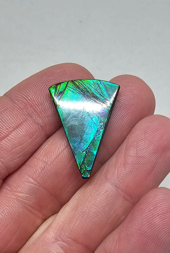 Ammolite is the fossilized shell of an ancient sea creature and is a rare, organic gemstone. This ammolite stone will change as you move, flashing out it’s full colors as the viewer catches it from the right angle and going dark or brownish when the light is coming from the wrong direction.