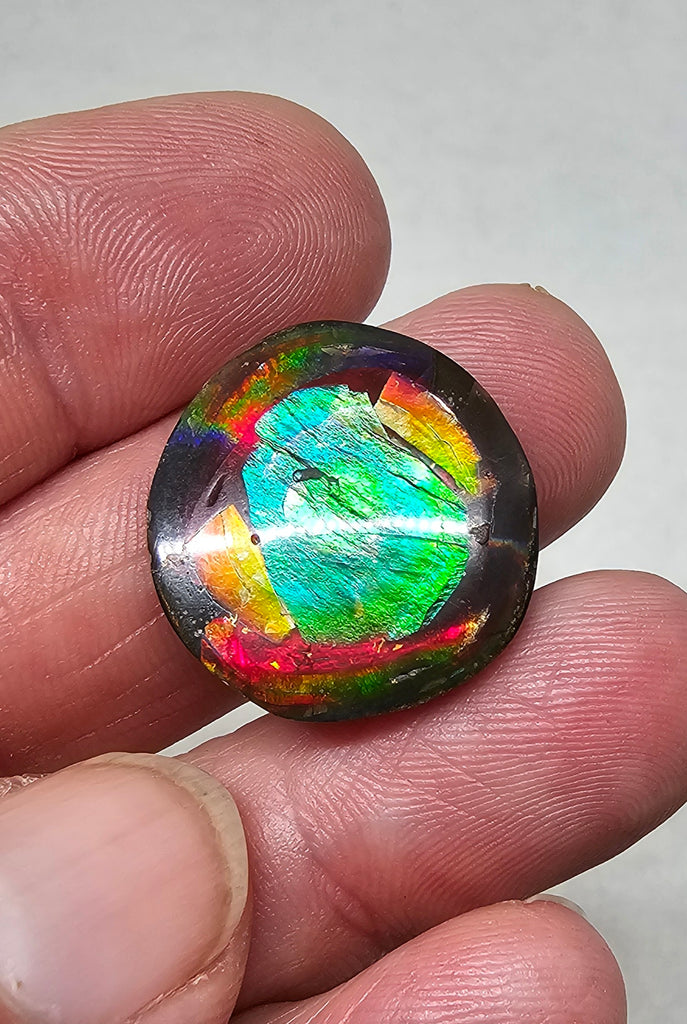 Ammolite is the fossilized shell of an ancient sea creature and is a rare, organic gemstone. This ammolite stone will change as you move, flashing out it’s full colors as the viewer catches it from the right angle and going dark or brownish when the light is coming from the wrong direction.