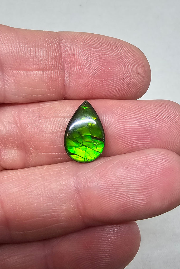 Ammolite is the fossilized shell of an ancient sea creature and is a rare, organic gemstone. This ammolite stone will change as you move, flashing out it’s full colors as the viewer catches it from the right angle and going dark or brownish when the light is coming from the wrong direction.