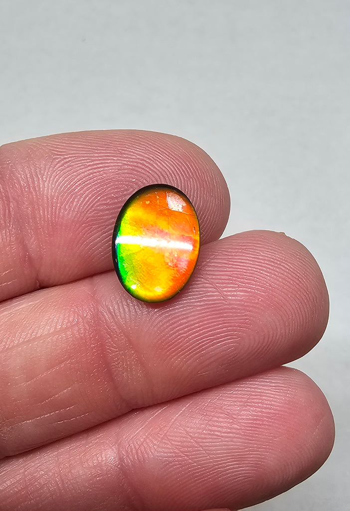 Ammolite is the fossilized shell of an ancient sea creature and is a rare, organic gemstone. This ammolite stone will change as you move, flashing out it’s full colors as the viewer catches it from the right angle and going dark or brownish when the light is coming from the wrong direction.