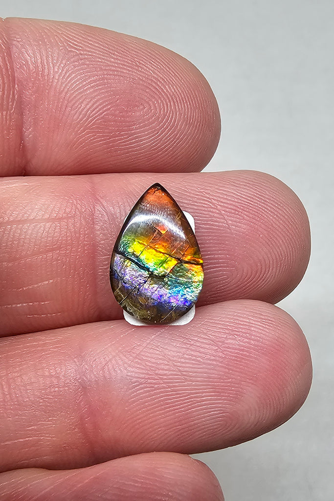 Ammolite is the fossilized shell of an ancient sea creature and is a rare, organic gemstone. This ammolite stone will change as you move, flashing out it’s full colors as the viewer catches it from the right angle and going dark or brownish when the light is coming from the wrong direction.