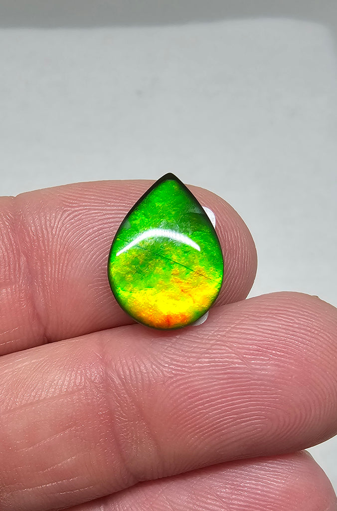 Ammolite is the fossilized shell of an ancient sea creature and is a rare, organic gemstone. This ammolite stone will change as you move, flashing out it’s full colors as the viewer catches it from the right angle and going dark or brownish when the light is coming from the wrong direction.