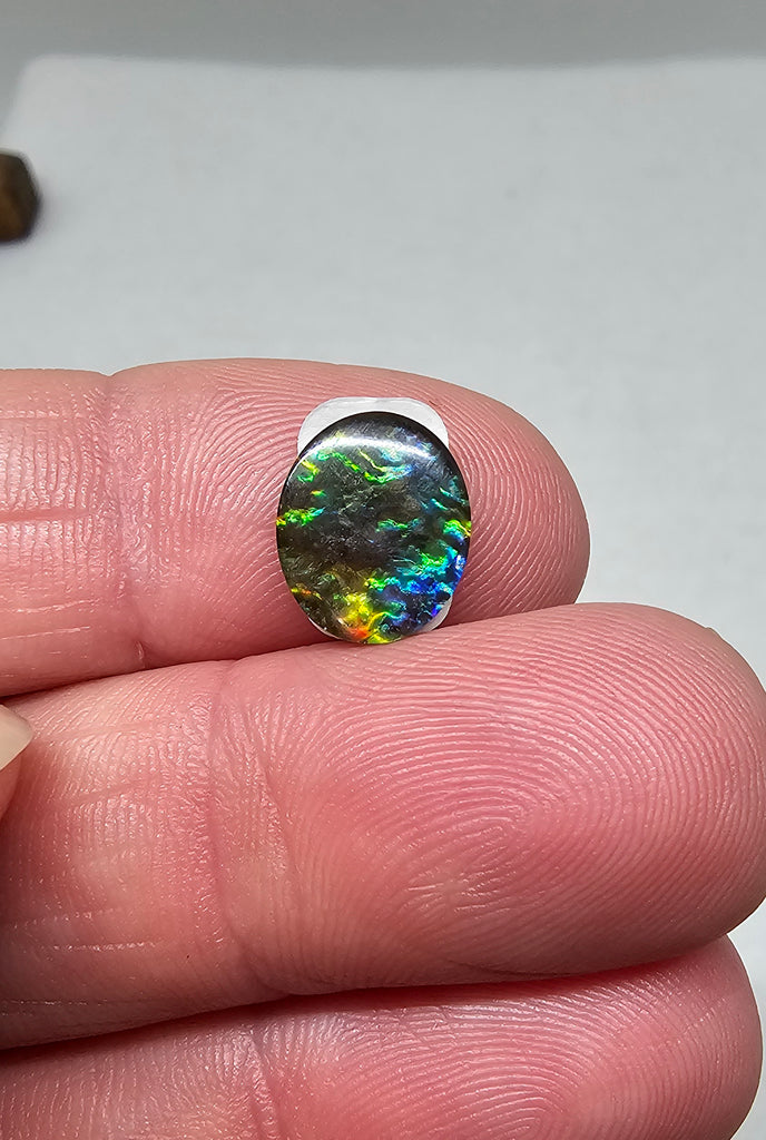 Ammolite is the fossilized shell of an ancient sea creature and is a rare, organic gemstone. This ammolite stone will change as you move, flashing out it’s full colors as the viewer catches it from the right angle and going dark or brownish when the light is coming from the wrong direction.