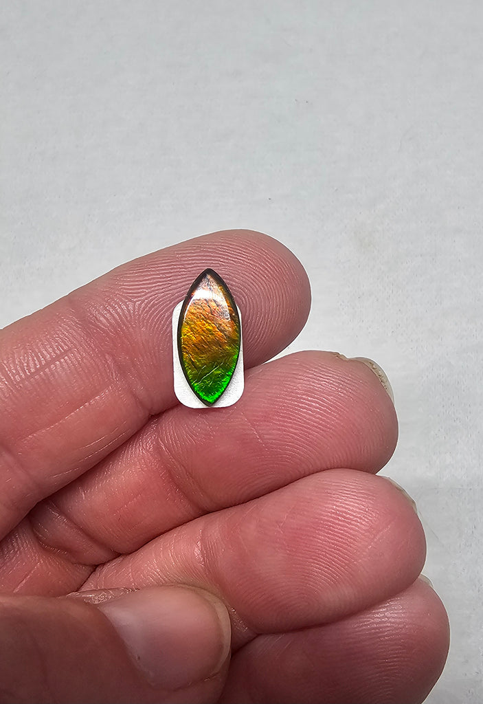 Ammolite is the fossilized shell of an ancient sea creature and is a rare, organic gemstone. This ammolite stone will change as you move, flashing out it’s full colors as the viewer catches it from the right angle and going dark or brownish when the light is coming from the wrong direction.