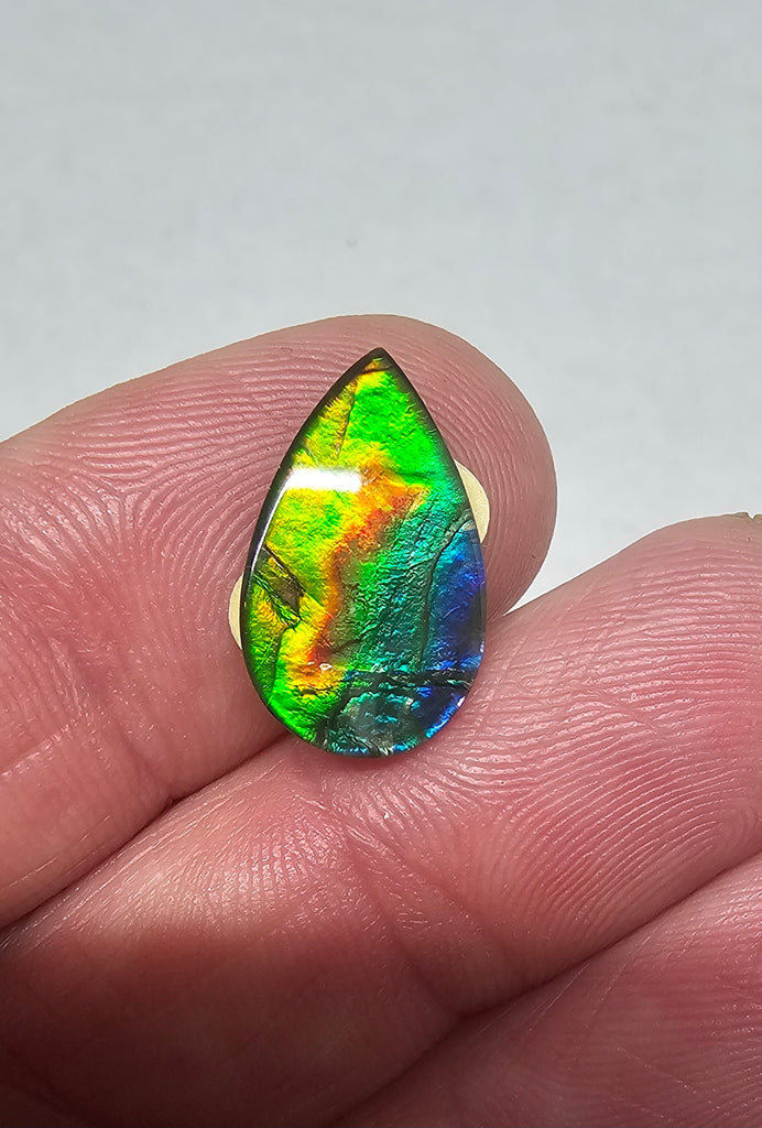Ammolite is the fossilized shell of an ancient sea creature and is a rare, organic gemstone. This ammolite stone will change as you move, flashing out it’s full colors as the viewer catches it from the right angle and going dark or brownish when the light is coming from the wrong direction.