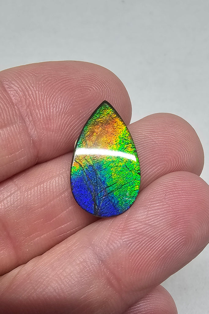 Ammolite is the fossilized shell of an ancient sea creature and is a rare, organic gemstone. This ammolite stone will change as you move, flashing out it’s full colors as the viewer catches it from the right angle and going dark or brownish when the light is coming from the wrong direction.