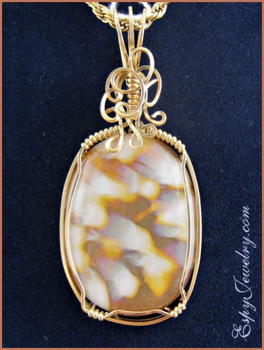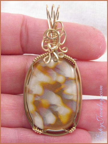 This art glass pendant is handcrafted from 14K/20 gold filled wire and a pretty cabochon created from blown art glass. What a great way to recycle art glass pieces that have been broken.